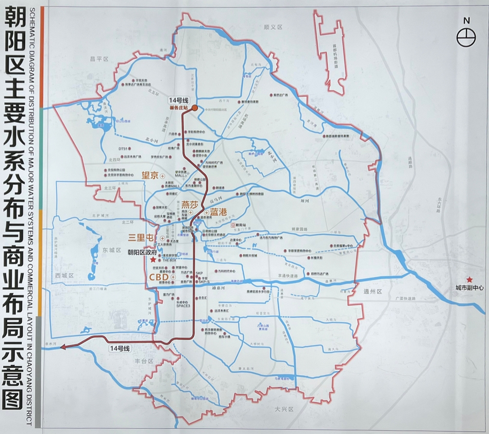 在作钓前,我们通常需要提前了解一些钓点的信息,比如下图是北京朝阳地区的水系分布